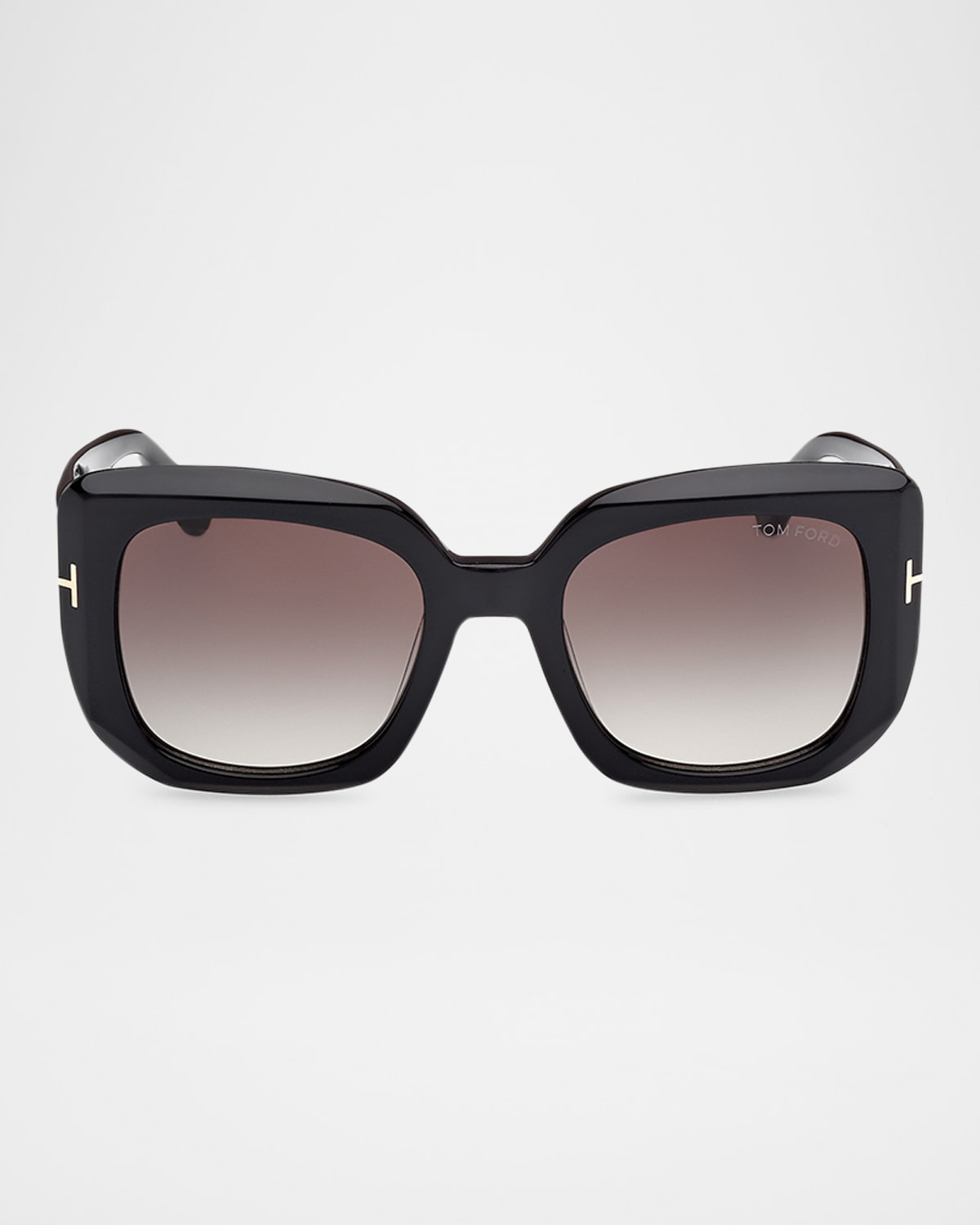 - TOM FORD "Carla-02" square sunglasses in acetate - Eye/bridge/temple (in mm): 52-21-140 - Gradient lenses - Saddle nose bridge - Wide, tapered arms - Signature T hinges - Acetate - Spot clean - 100% UVA/UVB protection - Made in Italy - Proposition 65 warning for California residents