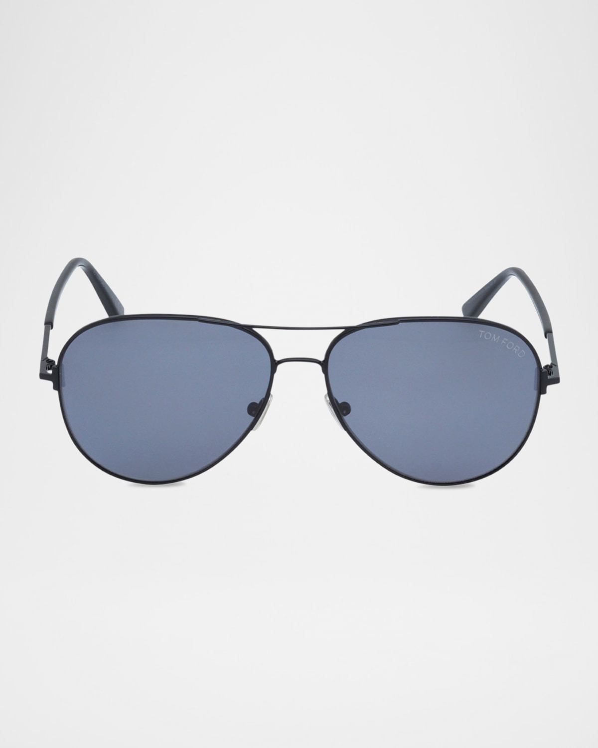 - TOM FORD "Clark" aviator sunglasses in metal - Lens/bridge/temple (in mm): 59-14-140 - Solid lenses; logo on corner - Sleek brow bar - Adjustable nose pads - Thin tapered arms - Capped earpieces - Spot clean - 100% UVA/UVB protection - Made in Italy - Proposition 65 warning for California residents