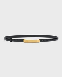 Croc-Embossed Leather Skinny Belt