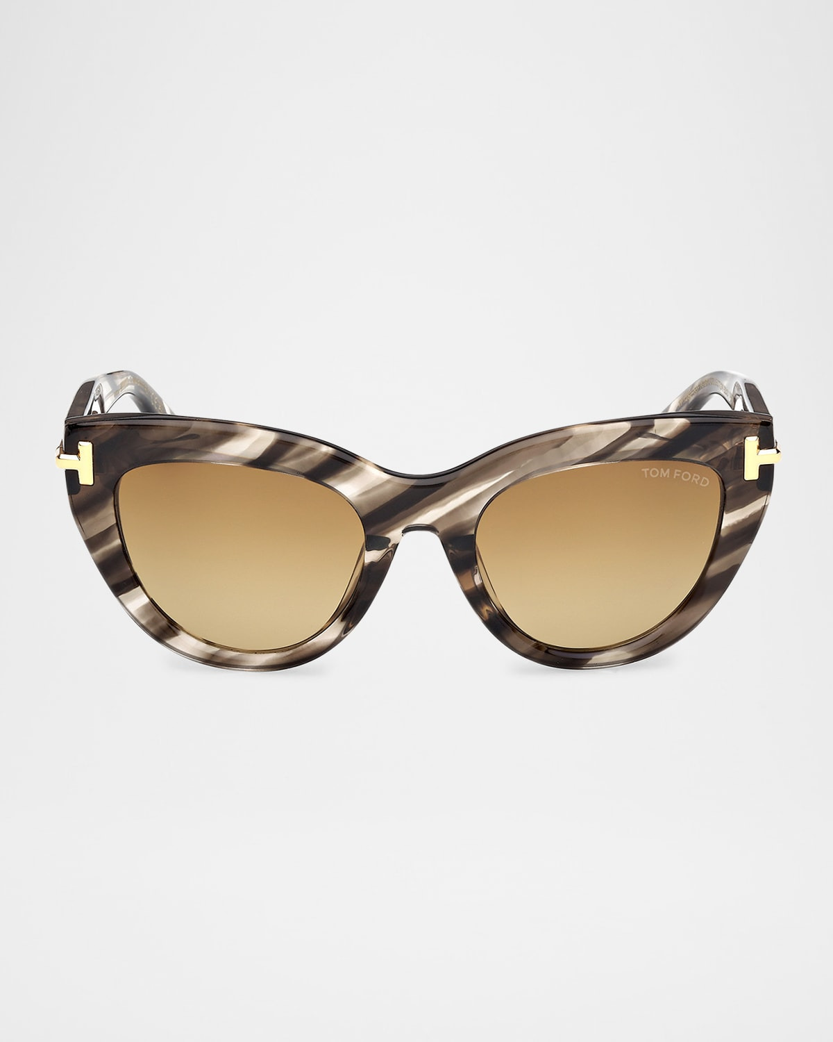 - TOM FORD cat-eye acetate sunglasses from the Icon collection - Eye/bridge/temple (in mm): 52-21-140 - Gradient lenses - Saddle nose bridge - Thin, tapered arms - Signature T hinges - Acetate - 100% UVA/UVB protection - Made in Italy - Proposition 65 warning for California residents