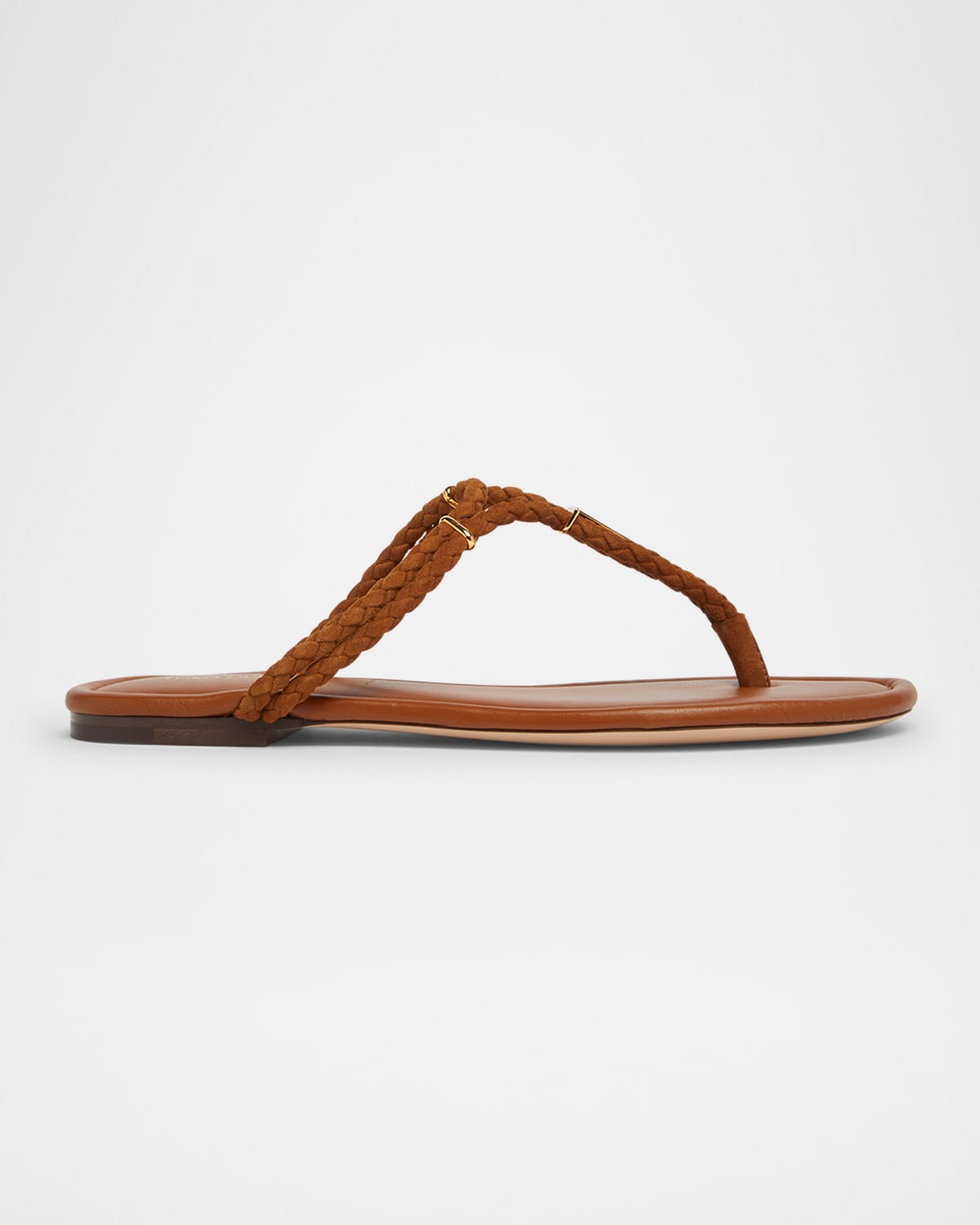 - TOM FORD "Lily" sandals with a braided suede upper and gold-tone T detail - 0.17 in / 5 mm flat heel - Open toe - Thong strap - Slip-on style - Lining: Leather - Made in Italy