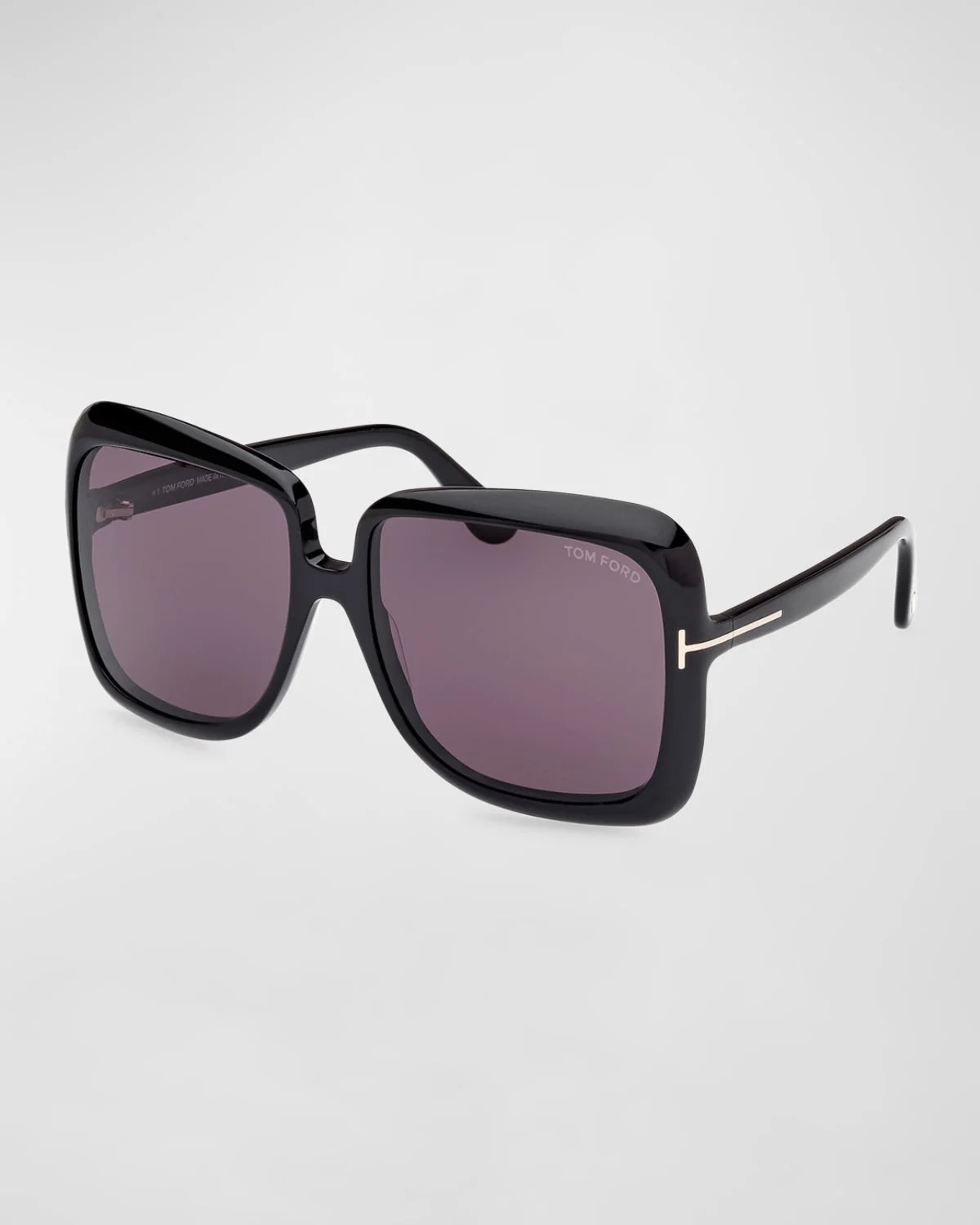 - TOM FORD "Lorelai" beveled square sunglasses in acetate - Solid lenses; logo on corner - Saddle nose bridge - Signature T hinges - Thin, tapered arms - Spot clean - 100% UVA/UVB protection - Made in Italy - Proposition 65 warning for California residents