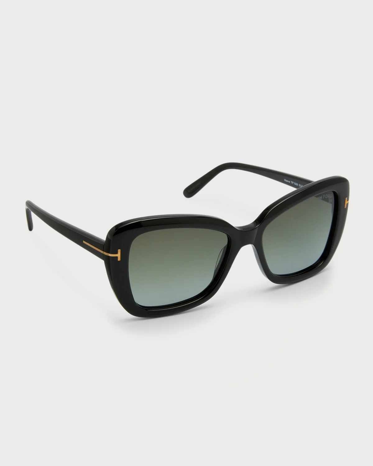 TOM FORD "Maeve" butterfly & nbsp;sunglasses in Havana acetate & nbsp; Lens/bridge/temple (in mm): 55 & nbsp;-17 -140 Logo on lens Saddle nose bridge & nbsp; Signature T hinges & nbsp; Thin, tapered arms & nbsp; Logo embellishment on earpieces & nbsp; 100% UVA/UVB protection Made in Italy Proposition 65 warning for California residents