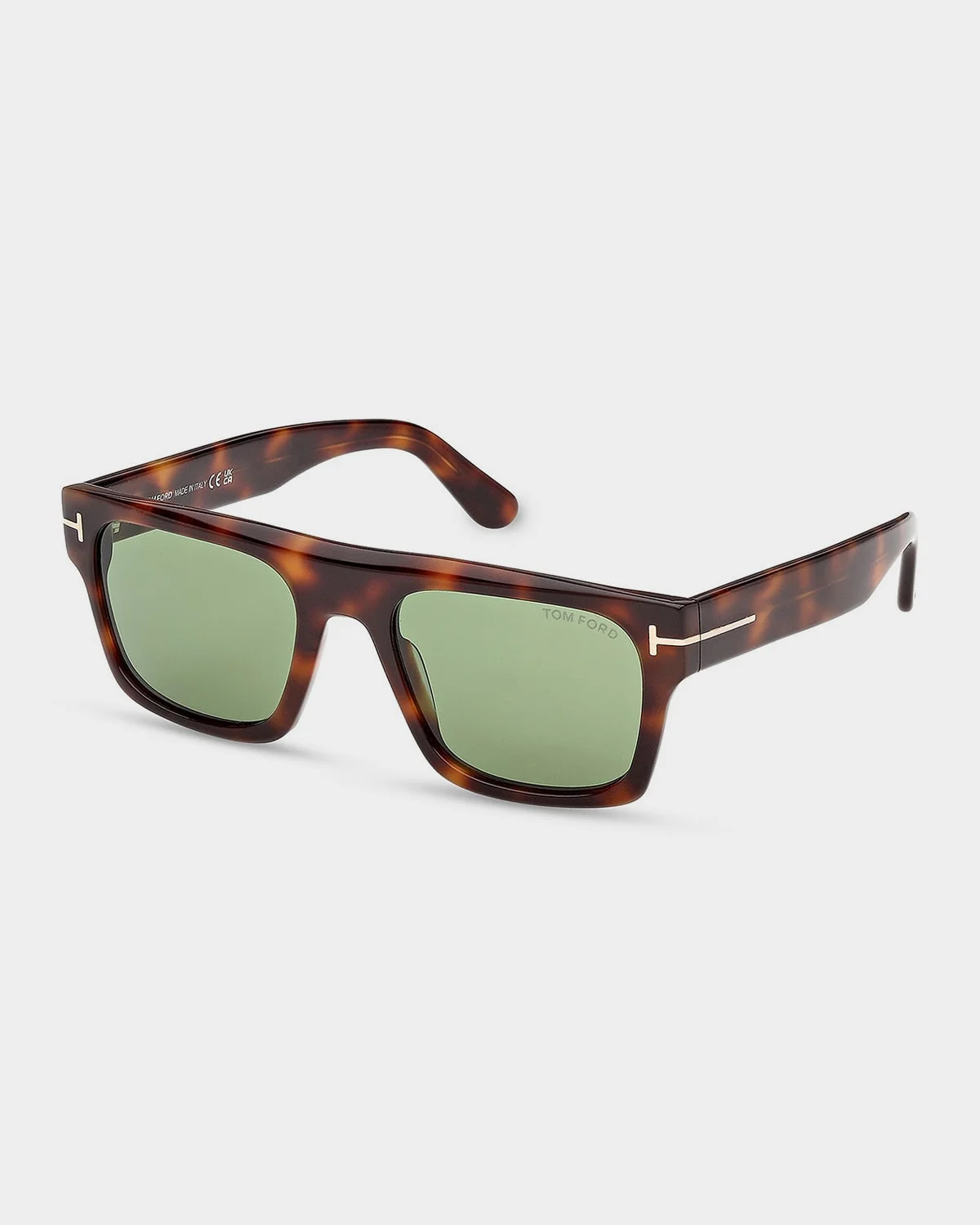 The "Cyrus 02" sunglasses by TOM FORD are crafted from tortoiseshell acetate with signature T-logo hardware wrapping from the temples to the endpieces. Lens/bridge/temple (in mm): 53-20-145 Square frames Straight brow Solid polycarbonate lenses Fixed nose pads Wide, tapered arms 100% UVA/UVB protection Made in Italy Proposition 65 warning for California residents
