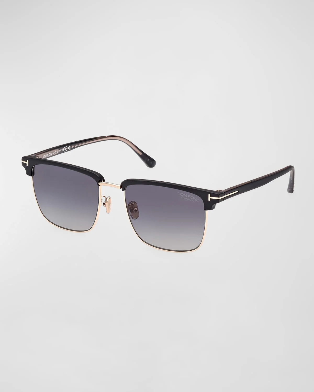 TOM FORD "FT0997-Hudson" square sunglasses feature signature T-logo at front frames/temples Eye/bridge/temple (in mm): 55-18-145 Gradient lenses; etched logo at left lens Half-rim frames Adjustable nose pads Thin, tapered arms Curved temple tips; inlaid logo Injection acetate 100% UVA/UVB protection Made in Italy Proposition 65 warning for California residents