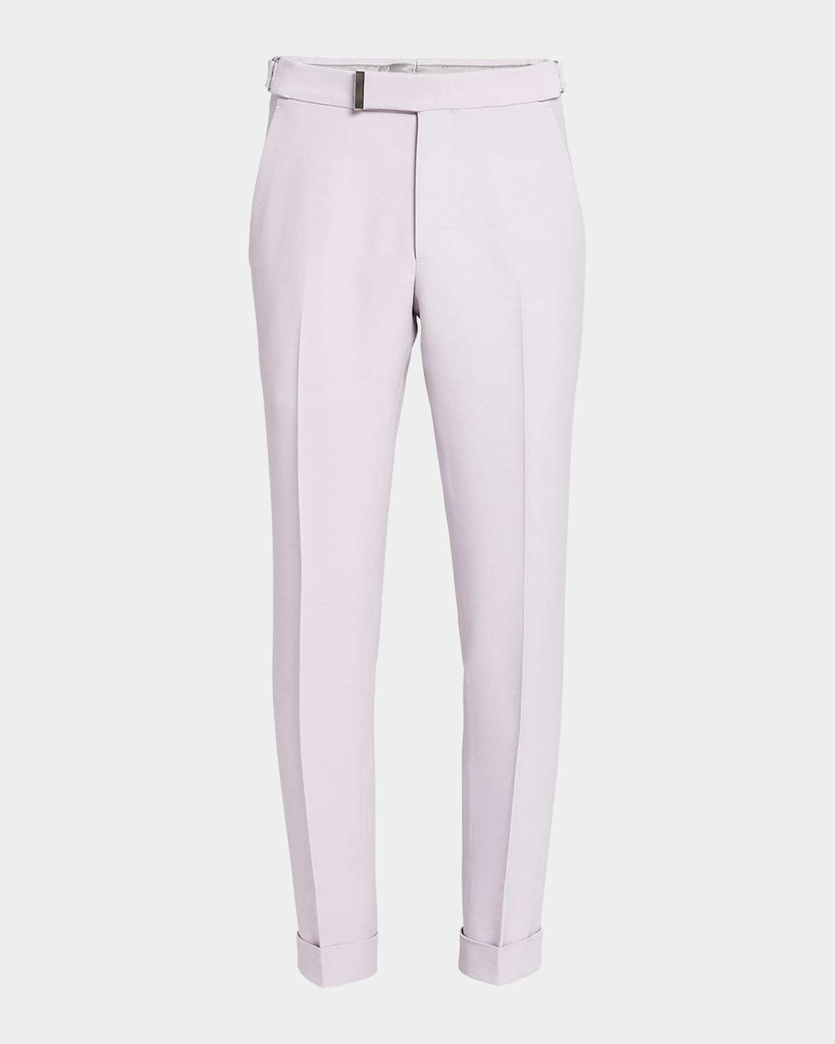- TOM FORD "Atticus" double weft fine twill trousers with mother-of-pearl buttons - Regular rise - Slanted side pockets - Full length - Straight legs - Concealed hook/zip fly - Viscose/virgin wool - Lining: Cotton/cupro/viscose - Dry clean - Made in Italy - Model is 6'1"/185cm.