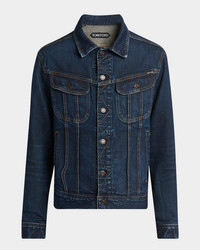 - TOM FORD jacket in denim accented with contrast stitching - Shirt collar - Button front - Chest buttoned flap pockets - Side welt pockets - Long sleeves - Single-button cuffs - Hem adjusters - Leather label - Cotton/polyurethane - Unlined - Professional cleaning recommended, wash inside out - Made in USA