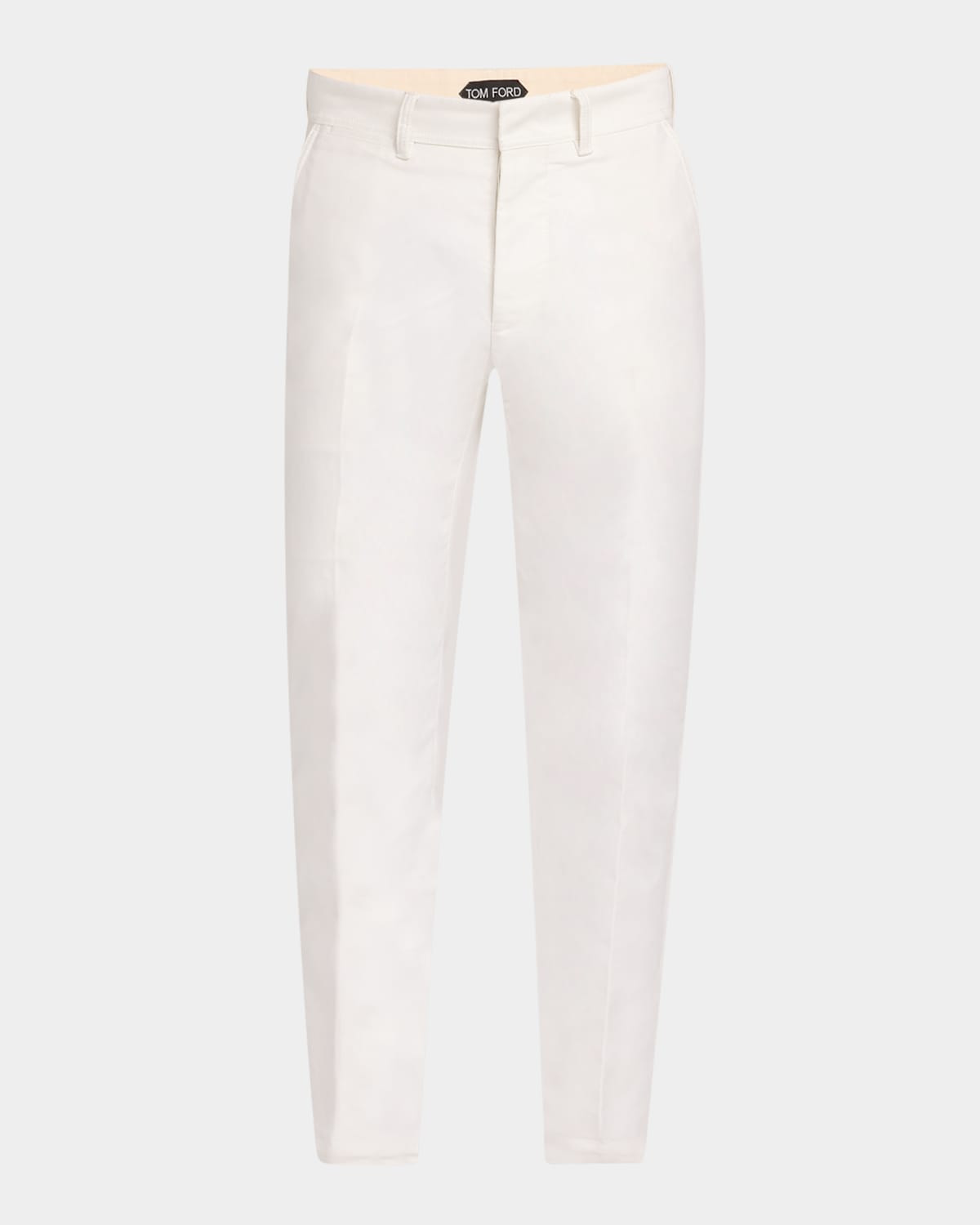 - TOM FORD chino pants in brushed cotton-satin - Regular rise - Side slash pocket; back welt pockets - Straight legs - Hook/zip fly; belt loops - Silk - Lining: Cotton - Professional cleaning recommended - Made in Italy