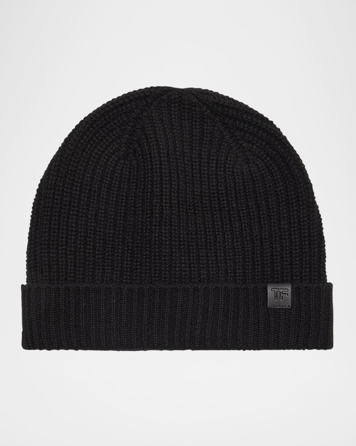 - TOM FORD beanie hat in ribbed cashmere featuring a leather TF logo tab - Foldover cuff - Cashmere - Professional cleaning recommended - Made in Italy