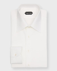 - TOM FORD "Cocktail Voile" evening shirt in textured cotton with genuine mother-of-pearl buttons - Point collar; button placket - Long sleeves - Round barrel cuffs - Shirttail hem - Slim fit - Cotton - Dry clean - Made in Italy - Model is 6'1"/185cm.