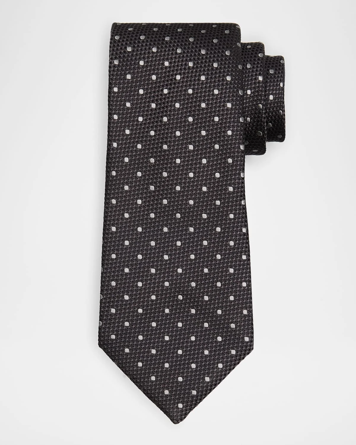 - TOM FORD silk tie in a contrast dot print - Approx. 3.5"W - Silk - Professional cleaning recommended - Made in Italy - Proposition 65 warning for California residents