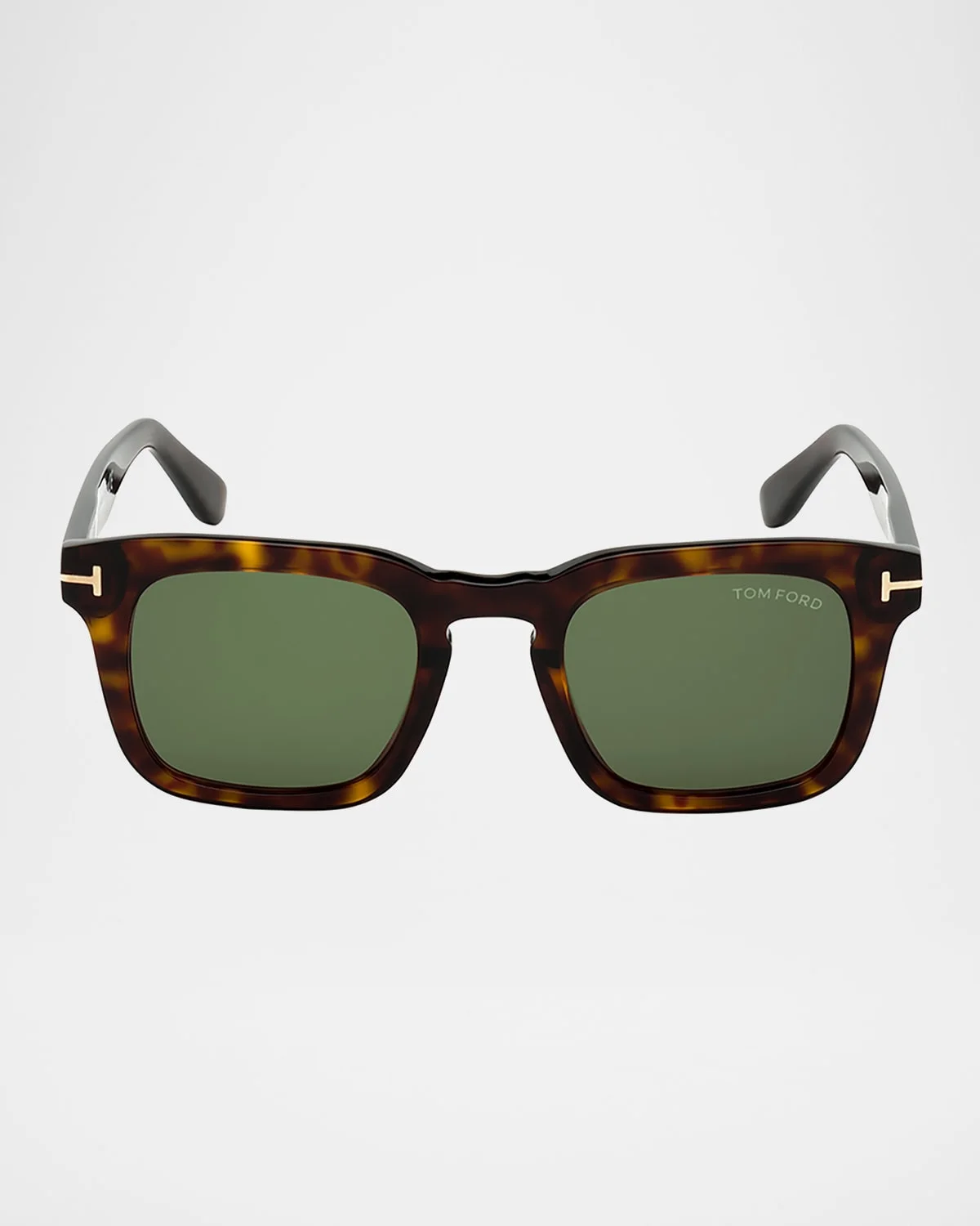 TOM FORD "Dax" square sunglasses in tortoiseshell acetate.Eye/bridge/temple (in mm): 50-20-145.Monochromatic lenses; logo scriptKeyhole nose bridge.Signature "T" at temples.Notched arms.Made in Italy.