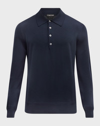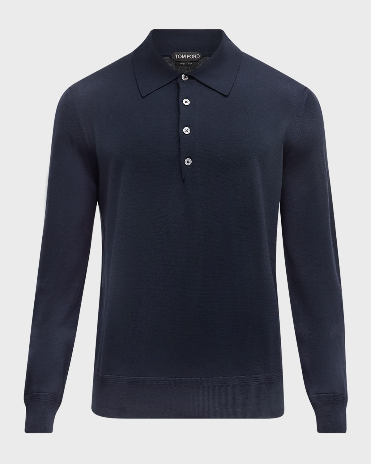 - TOM FORD polo sweater in fine-gauge Merino wool - Spread collar - Four-button placket - Long sleeves - Ribbed cuffs and hem - Pullover style - Wool - Made in Italy - Model is 6'1"/185cm.