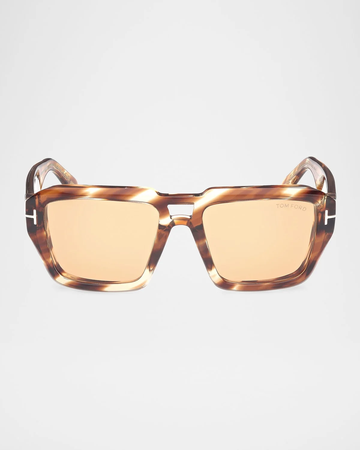 TOM FORD "FT1202M" rectangle sunglasses in acetate Lens/bridge/temple (in mm): 56-19-140 Solid-color lenses Left lens logo script Double nose bridge Metal T-temple decoration Exposed metal corewire Tapered arms Acetate 100% UVA/UVB protection Made in Italy Proposition 65 warning for California residents