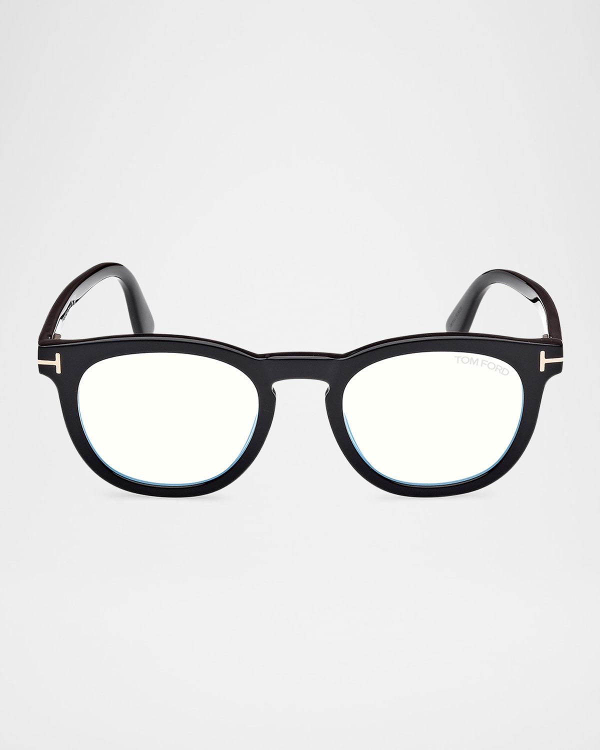 - TOM FORD "FT5974-BM" round optical frames in acetate - Lens/bridge/temple (in mm): - 50-21-145 - Includes one interchangeable magnetic sunglasses clip - Ready-to-wear clear lenses enhanced by a blue coating able to reduce the risks related to blue light exposure from LED screens - Keyhole nose bridge - Metal T-temple decoration - Thin arms - Acetate - Made in Italy - Proposition 65 warning for California residents