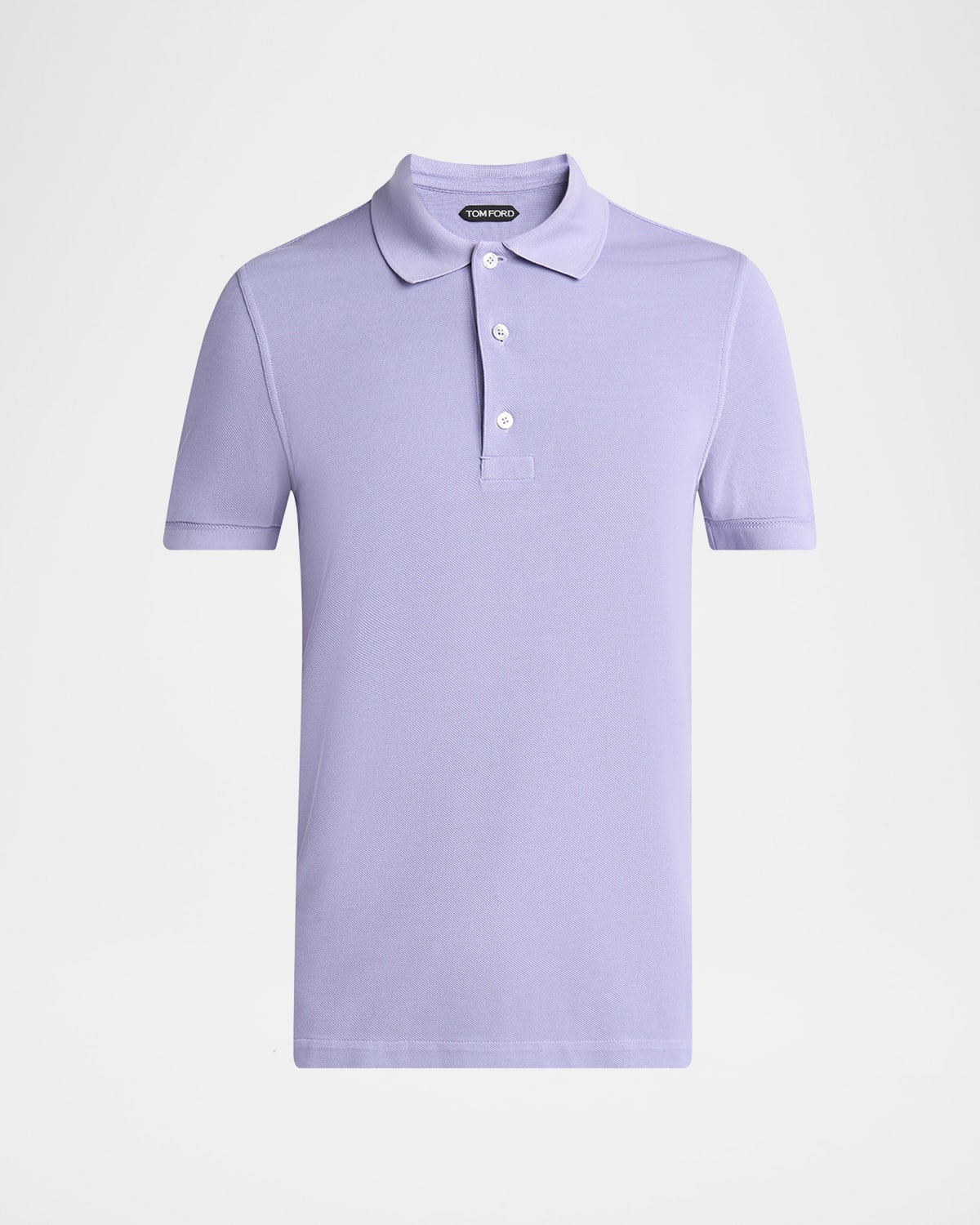 - TOM FORD solid polo shirt in lyocell pique fabric - Spread collar - Three-button placket - Short sleeves - Uneven vented sides - Embroidered TF logo on hem - Pullover style - Lyocell - Professional cleaning recommended - Made in Italy
