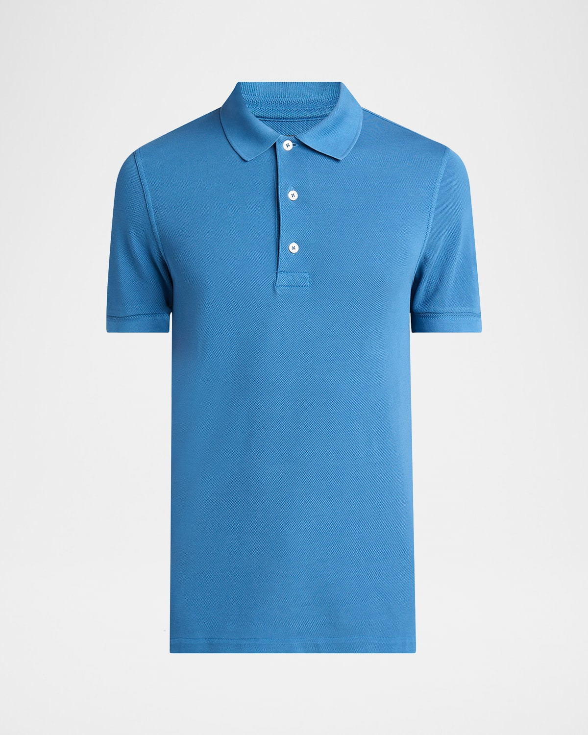 - TOM FORD solid polo shirt in lyocell pique fabric - Spread collar - Three-button placket - Short sleeves - Uneven vented sides - Embroidered TF logo on hem - Pullover style - Lyocell - Professional cleaning recommended - Made in Italy