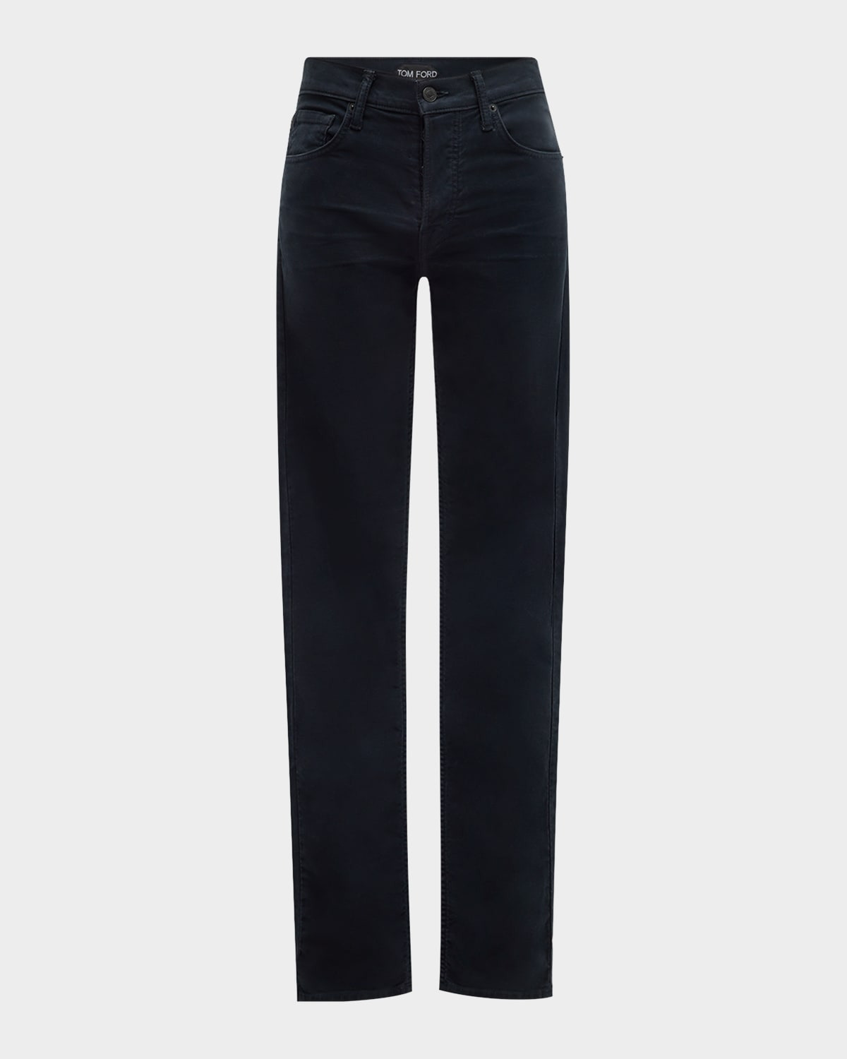- TOM FORD "Moleskin" slim fit jeans - Regular rise - Button-zip front; belt loops - Five-pocket style - Logo patch at back - Slim, straight legs - Full length - Cotton/polyurethane - Made in Italy - Model is 6'1"/185cm.