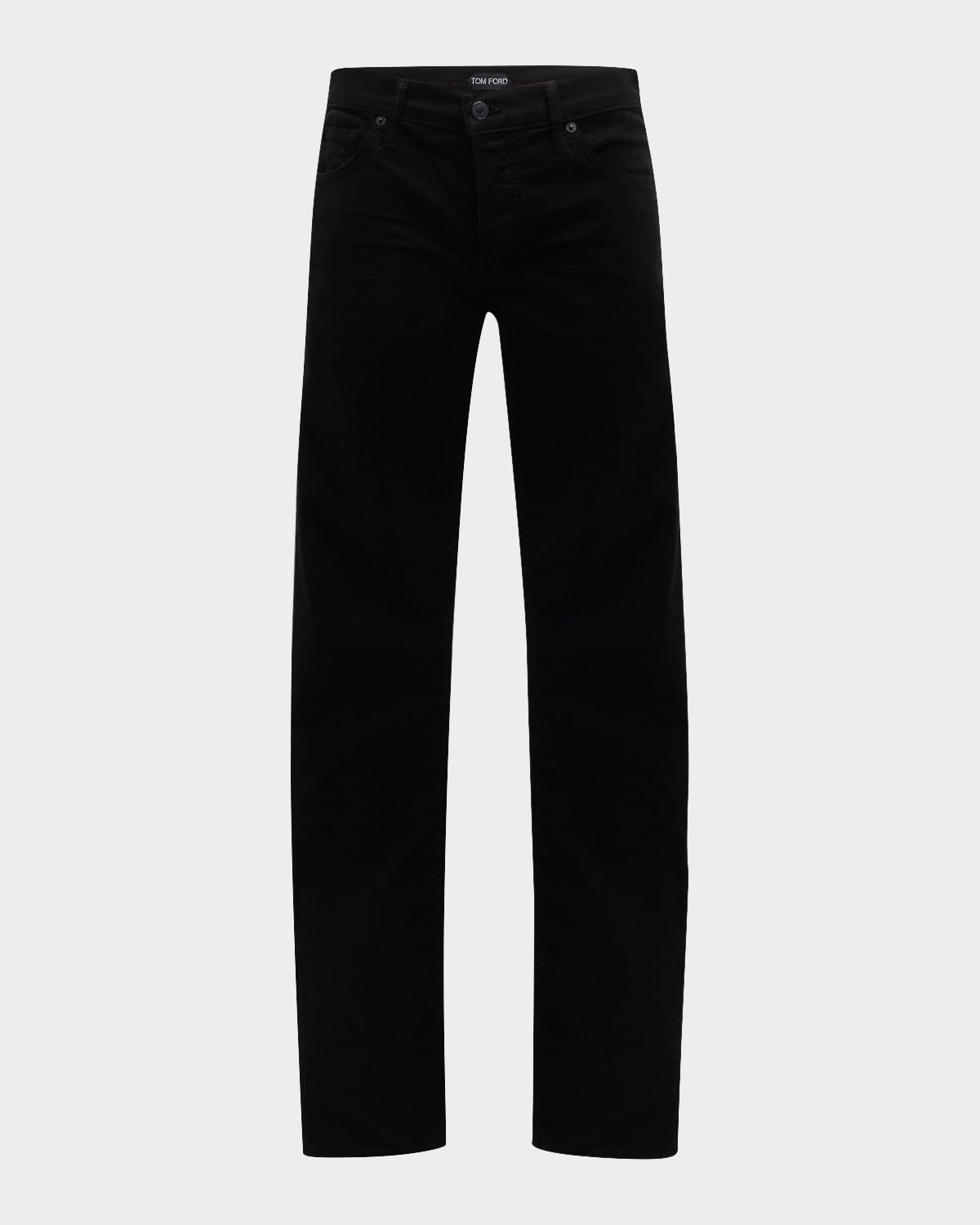 - TOM FORD "Moleskin" slim fit jeans - Regular rise - Button-zip front; belt loops - Five-pocket style - Logo patch at back - Slim, straight legs - Full length - Cotton/polyurethane - Made in Italy - Model is 6'1"/185cm.
