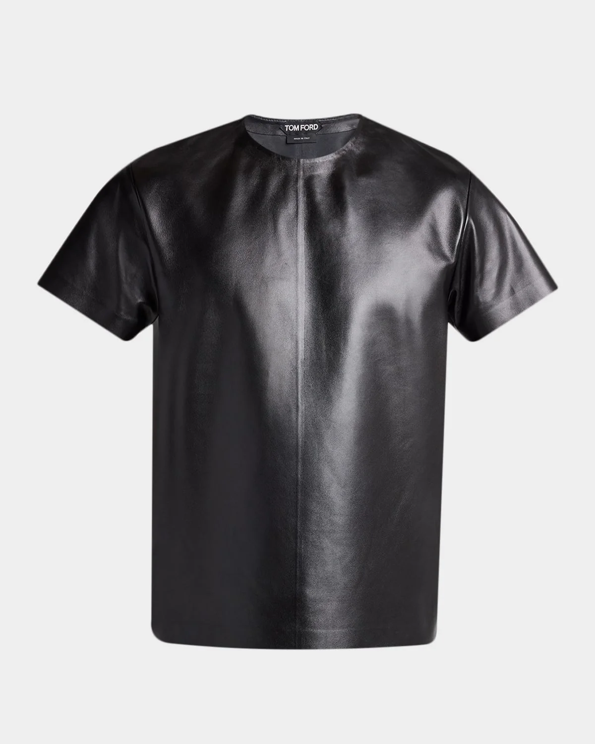 - TOM FORD shirt crafted from soft napa leather, with a glossy finish - Crew neckline - Short sleeves - Pullover style - Leather - Leather method dry cleaning - Made in Italy