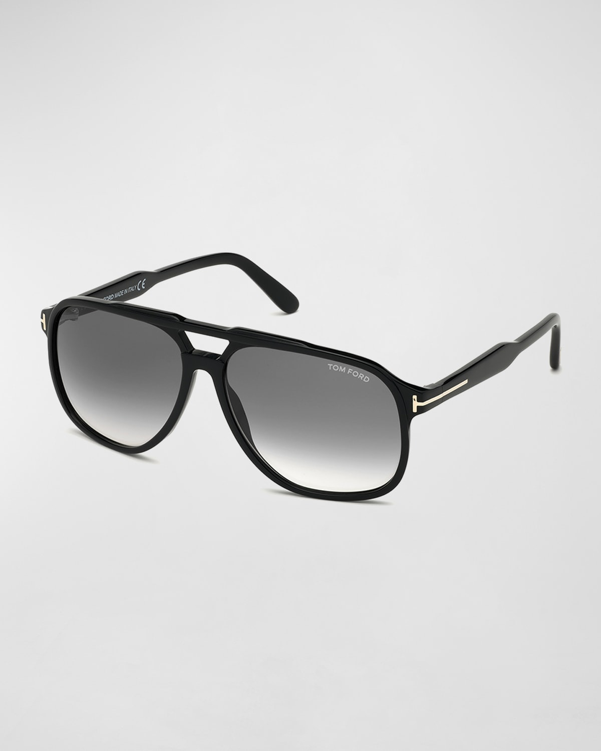 - TOM FORD "Raoul" sunglasses in solid acetate frames. - 62-14-140. - Gradient lenses; logo script. - Double nose bridge. - Signature "T" at temples. - Notched arms. - 100%25 UVA/UVB protection. - Made in Italy. Online Inquiries: NMS21_N6WJX Store Inquiries: #3301162