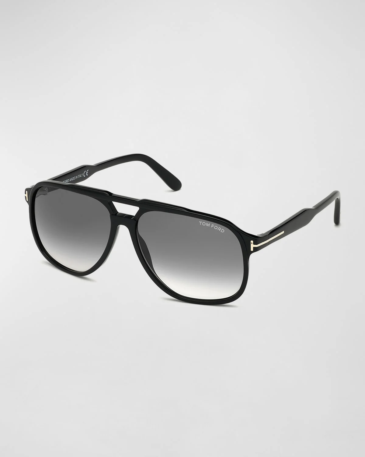 TOM FORD "Raoul" sunglasses in solid acetate frames. Eye/bridge/temple (in mm): 62-14-140. Gradient lenses; logo script. Double nose bridge. Signature "T" at temples. Notched arms. 100%25 UVA/UVB protection. Made in Italy.