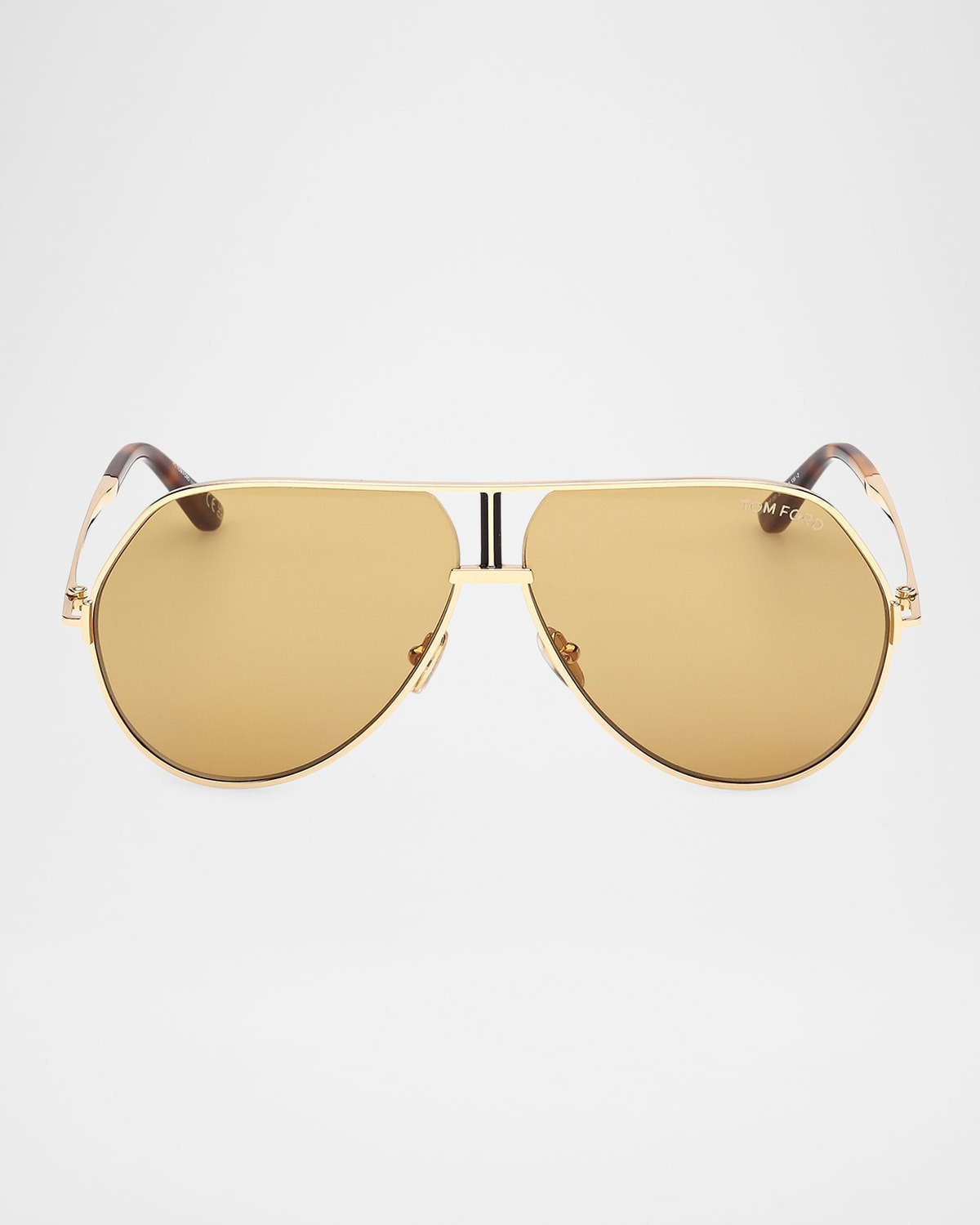 - TOM FORD "Rickie-02" aviator sunglasses in luxurious metal - Lens/bridge/temple (in mm): - 63-10-135 - Solid-color lenses - Left lens logo script - Double-nose bridge - Adjustable nose pads - Signature metal T temple decoration - Thin arms - Curved, capped temple tips - Metal - 100% UVA/UVB protection - Made in Italy - Proposition 65 warning for California residents