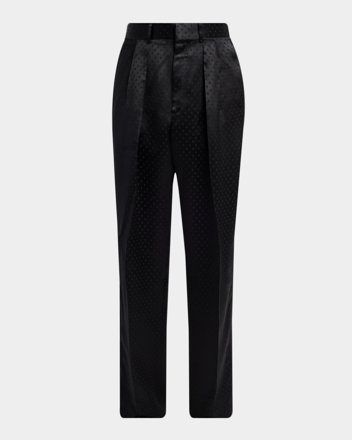Men's Satin Polka Dot Jacquard Double-Pleated Pants