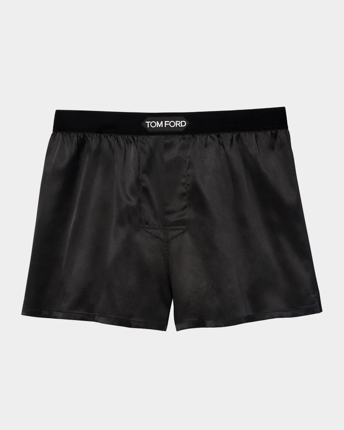 TOM FORD boxer shorts in solid silk. Jacquard grosgrain waistband with logo. Closed front. Classic fit. Made in Italy.