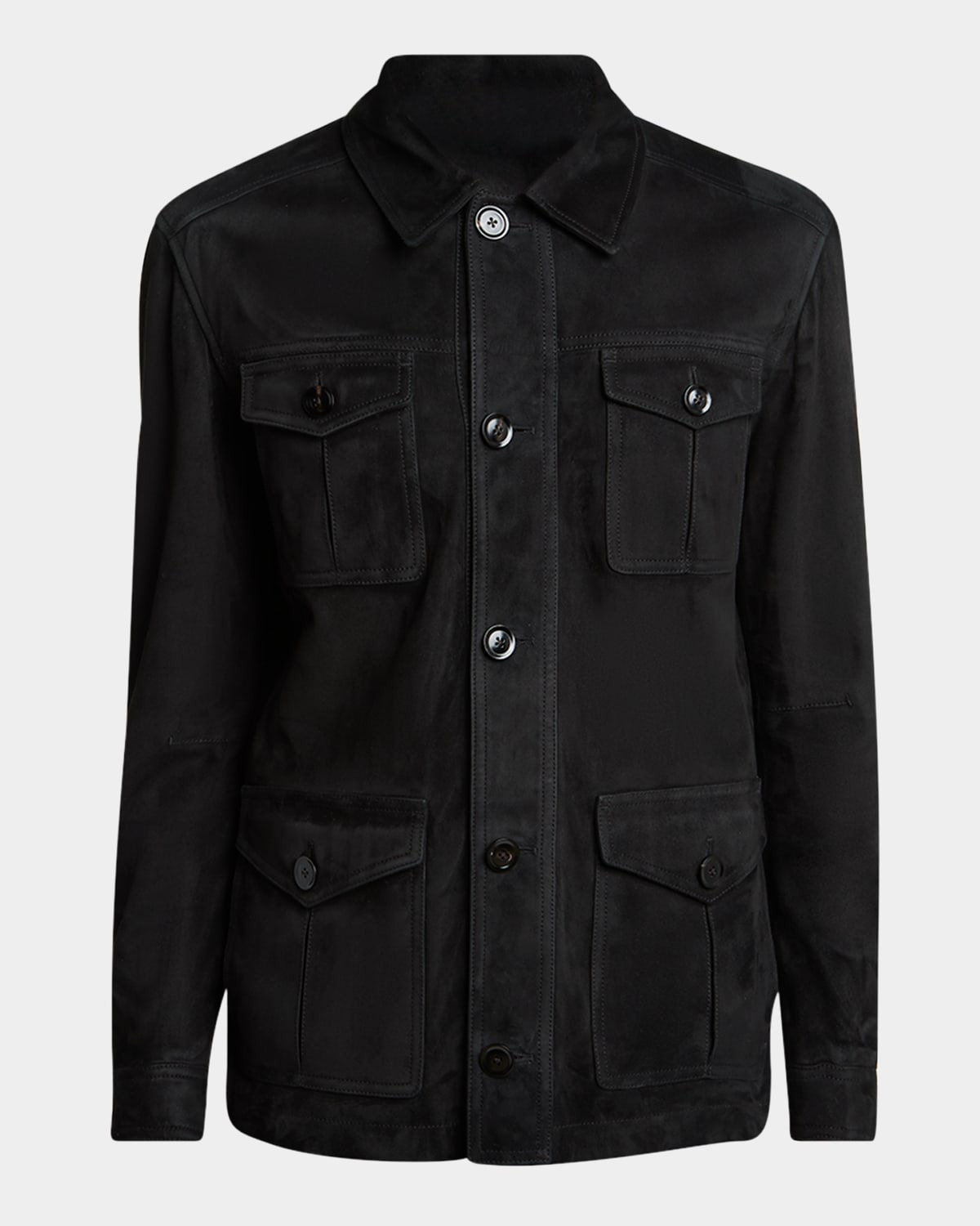 - TOM FORD military jacket in supple suede for a soft and luxurious finish - Shirt collar - Button placket - Four buttoned flap pockets - Long sleeves - Single-button cuffs - Leather/linen/viscose - Fully lined - Professional cleaning recommended - Made in Italy