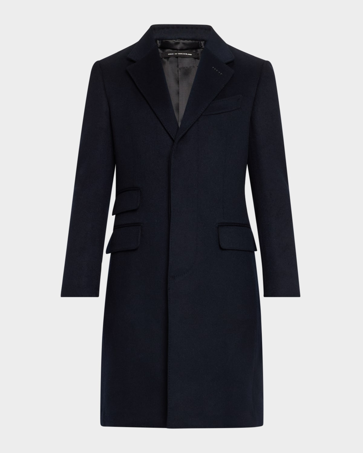 - TOM FORD tailored topcoat - Notched lapels - Concealed front closure - Chest welt pocket - Side flap pockets - Ticket pocket - Finished sleeves with button detail - Center back vent - Virgin wool/cashmere - Lining: Cupro/silk - Made in Italy