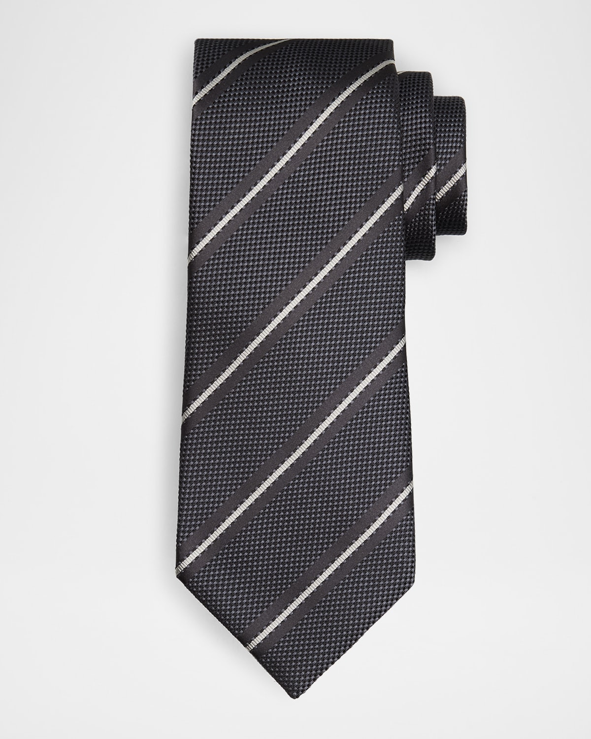 - TOM FORD silk tie in two-tone diagonal stripes - May be styled in multiple ways - Approx. 3.5"W - Silk - Professional cleaning recommended - Made in Italy - Proposition 65 warning for California residents