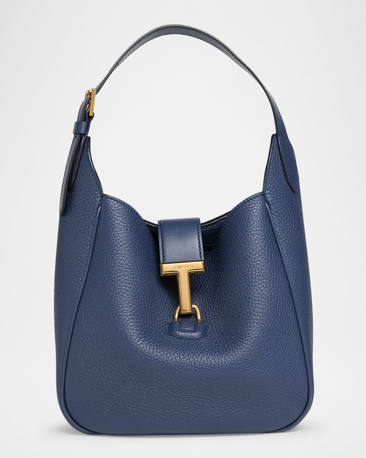 - TOM FORD "Monarch" small sleek hobo bag crafted in grain leather with gold-tone hardware - Adjustable shoulder strap - Open top with center T clasp closure - Interior, two slip pockets - Lining: Leather - Approx. 9.3"H x 8.9"W x 3.1"W - Item Weight (Lbs.): 1.1 - Made in Italy