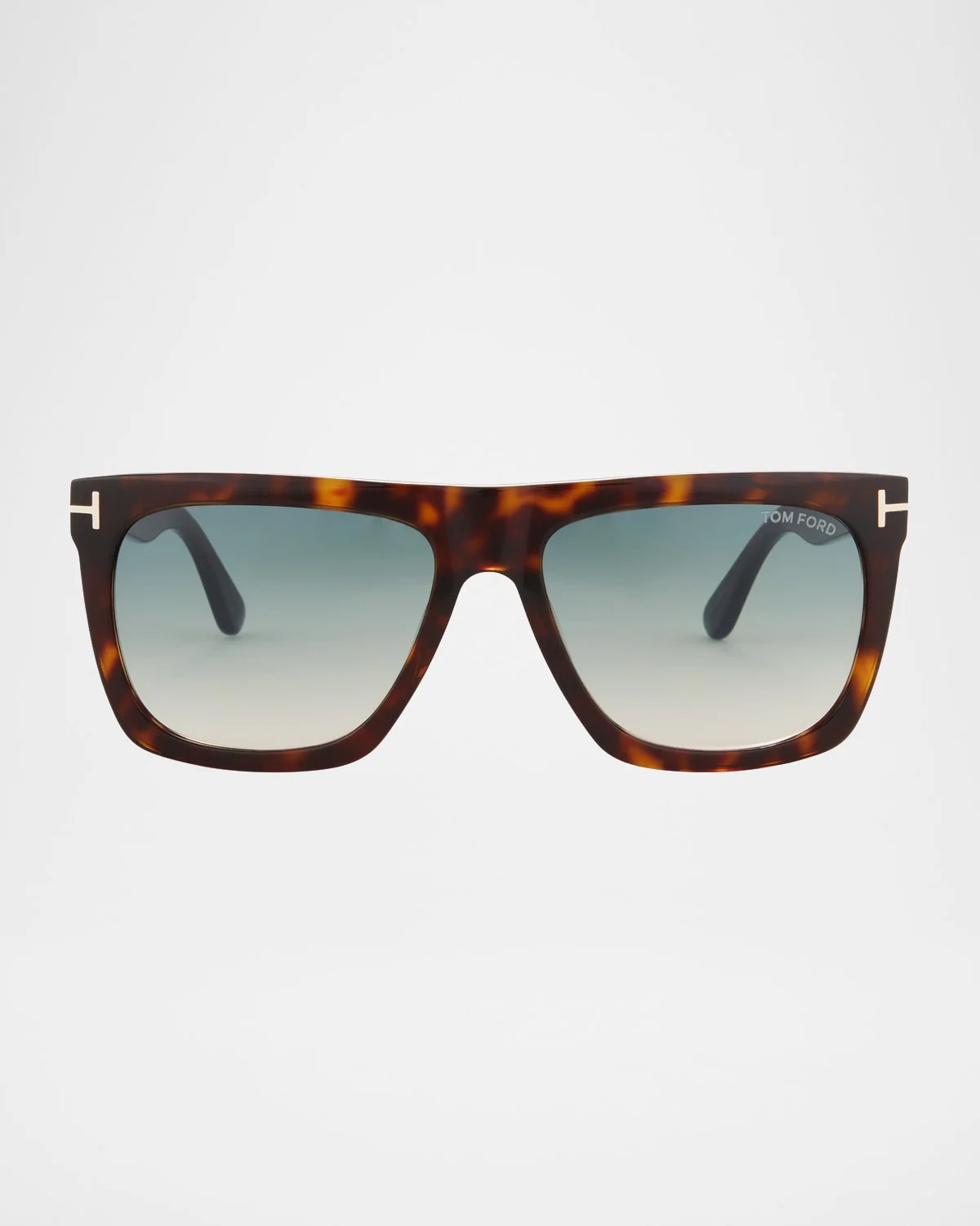 Tom Ford "Morgan" sunglasses.Eye/bridge/temple (mm): 57-17-140.Thick square acetate frames.Gradient lenses.Rose golden "T" insets at temples.100%25 UVA/UVB protection.Made in Italy.