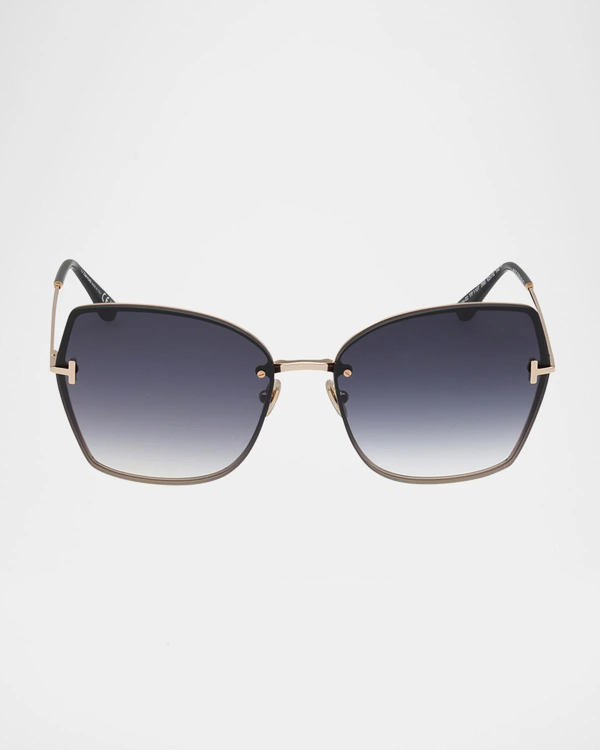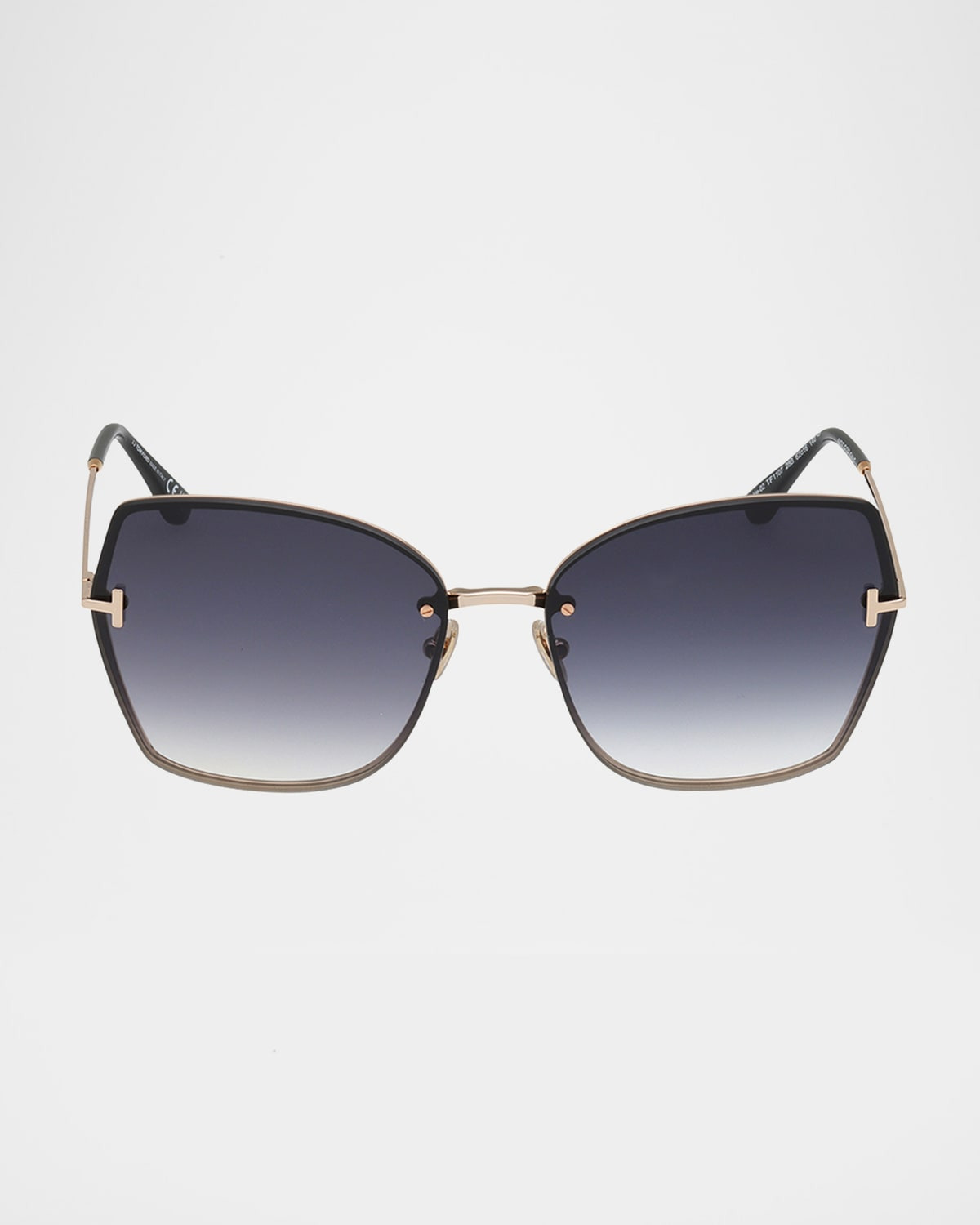 - TOM FORD "Nickie" butterfly sunglasses in metal - Lens/bridge/temple (in mm): 62-16-140 - Gradient lenses; logo on corner - Adjustable nose pads - Signature T hinges - Thin, tapered arms - Spot clean - 100% UVA/UVB protection - Made in Italy - Proposition 65 warning for California residents