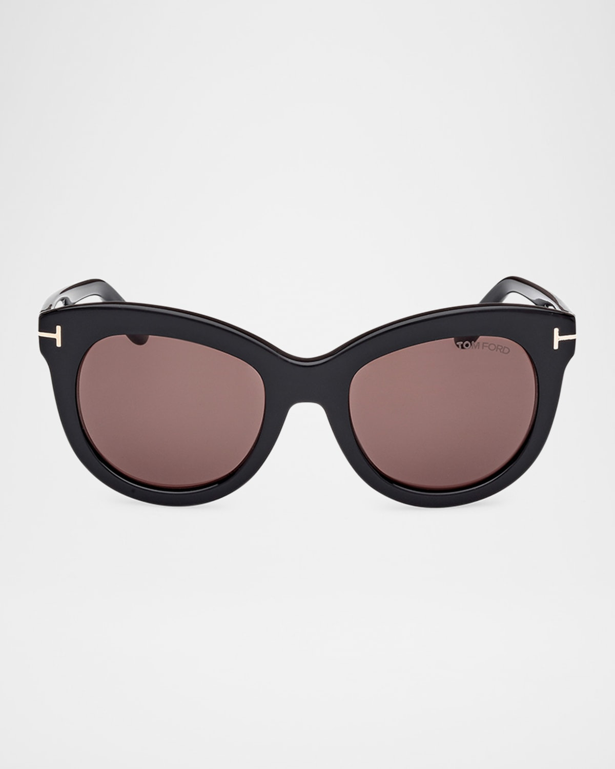 - TOM FORD "Odette" round sunglasses in acetate - Lens/bridge/temple (in mm): 53-21-140 - Solid-color lenses - T logo on hinge - Thin, tapered arms - Logo on earpieces - 100% UVA/UVB protection - Made in Italy - Proposition 65 warning for California residents