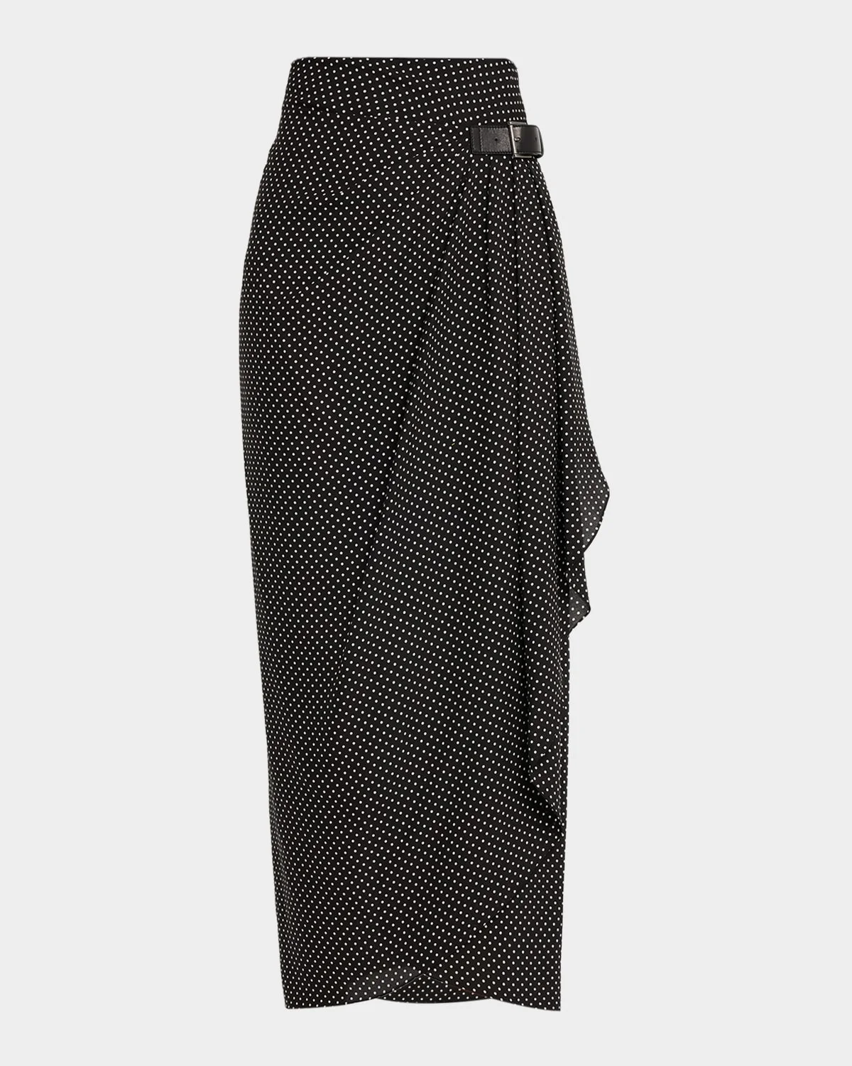Polka-Dot Silk Buckle Wrap Midi Skirt