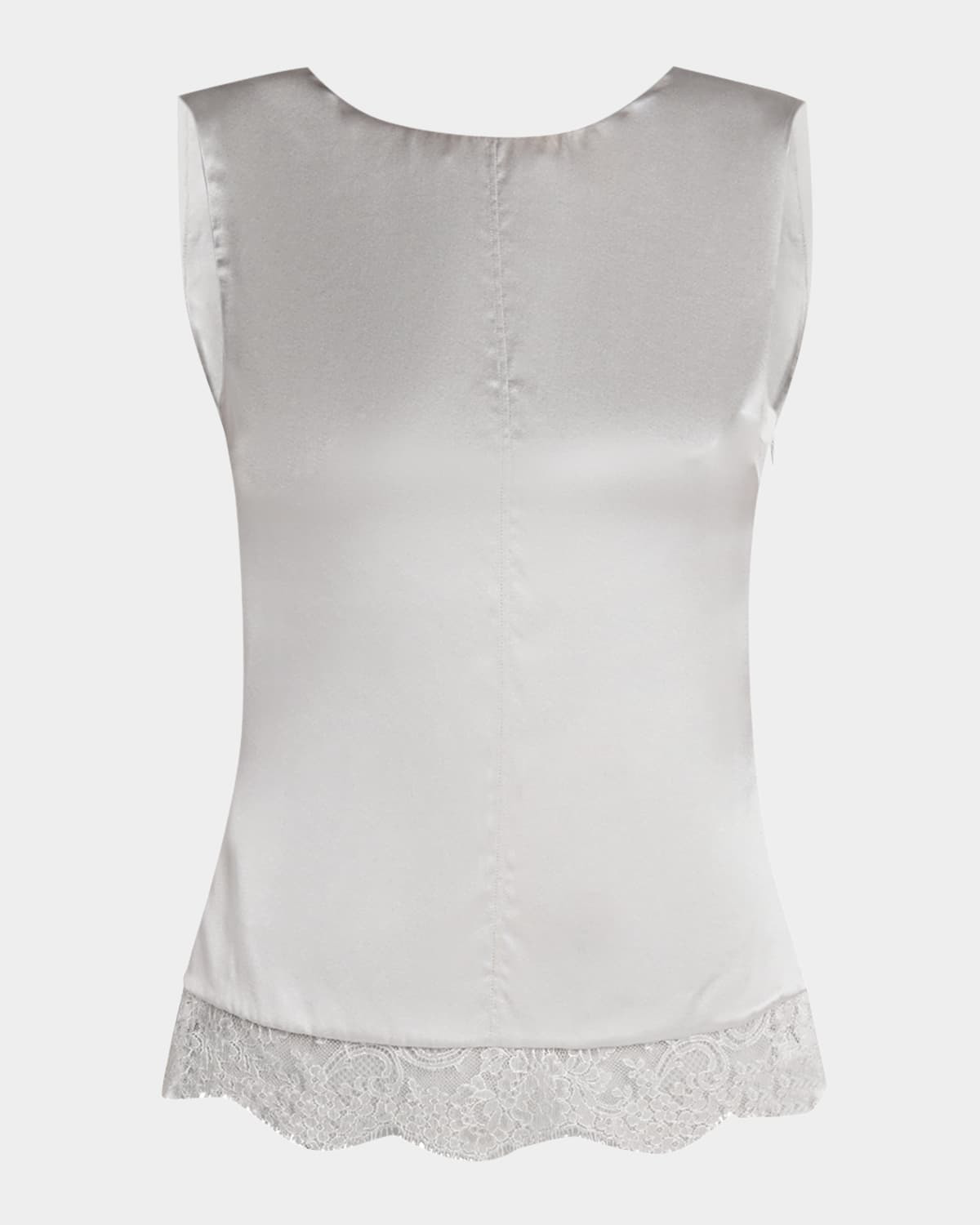 SLEEVELESS SILK TOP WITH V-BACK AND LACE INSERTS