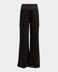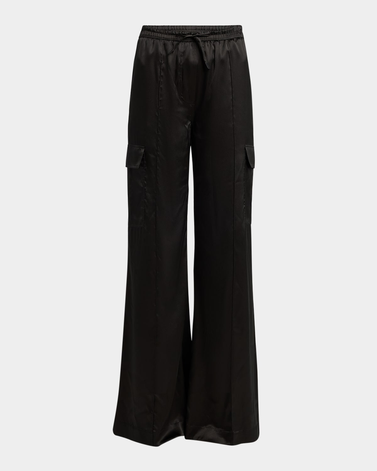 Stretch Silk Wide-Leg Cargo Pajama Pants