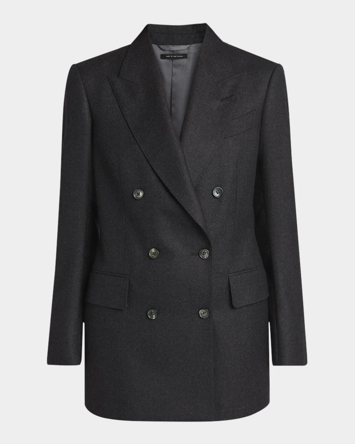 - TOM FORD jakcet in tailoring cashmere - Peak lapels; double-breasted front - Long sleeves; button cuffs - Chest welt pocket; hip flap pockets - Straight fit - Hem falls below the hip - Walking vent back - Cashmere/silk/cupro - Imported