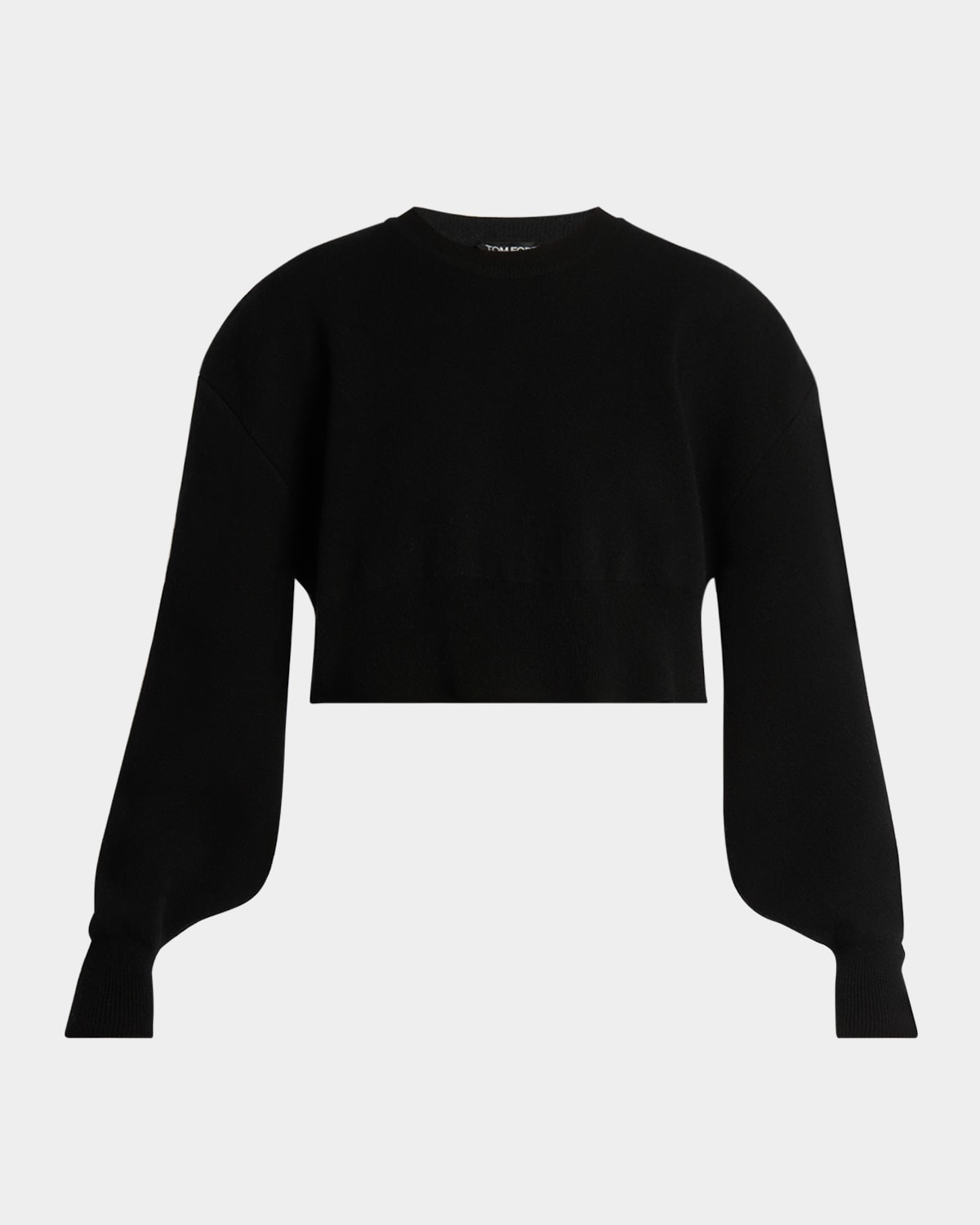 - TOM FORD sweater knit in a soft wool-cashmere blend with shapely curved sleeves - Crew neckline - Long sleeves; ribbed cuffs - Loose fit - Cropped length - Pullover style - Cashmere/wool - Made in Italy