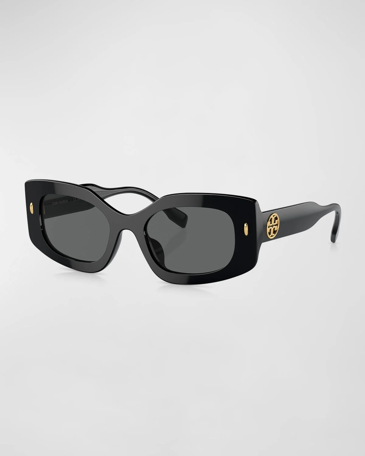 Tory Burch "TY7202U" rectangle sunglasses in acetate and plastic Eye/bridge/temple (in mm): 50-19-145 Solid beveled lenses Saddle nose bridge & nbsp; Signature monogram & nbsp;on temples & nbsp; Wide, tapered arms Style is rx-able 100% UVA/UVB protection Made in Italy Proposition 65 warning for California residents