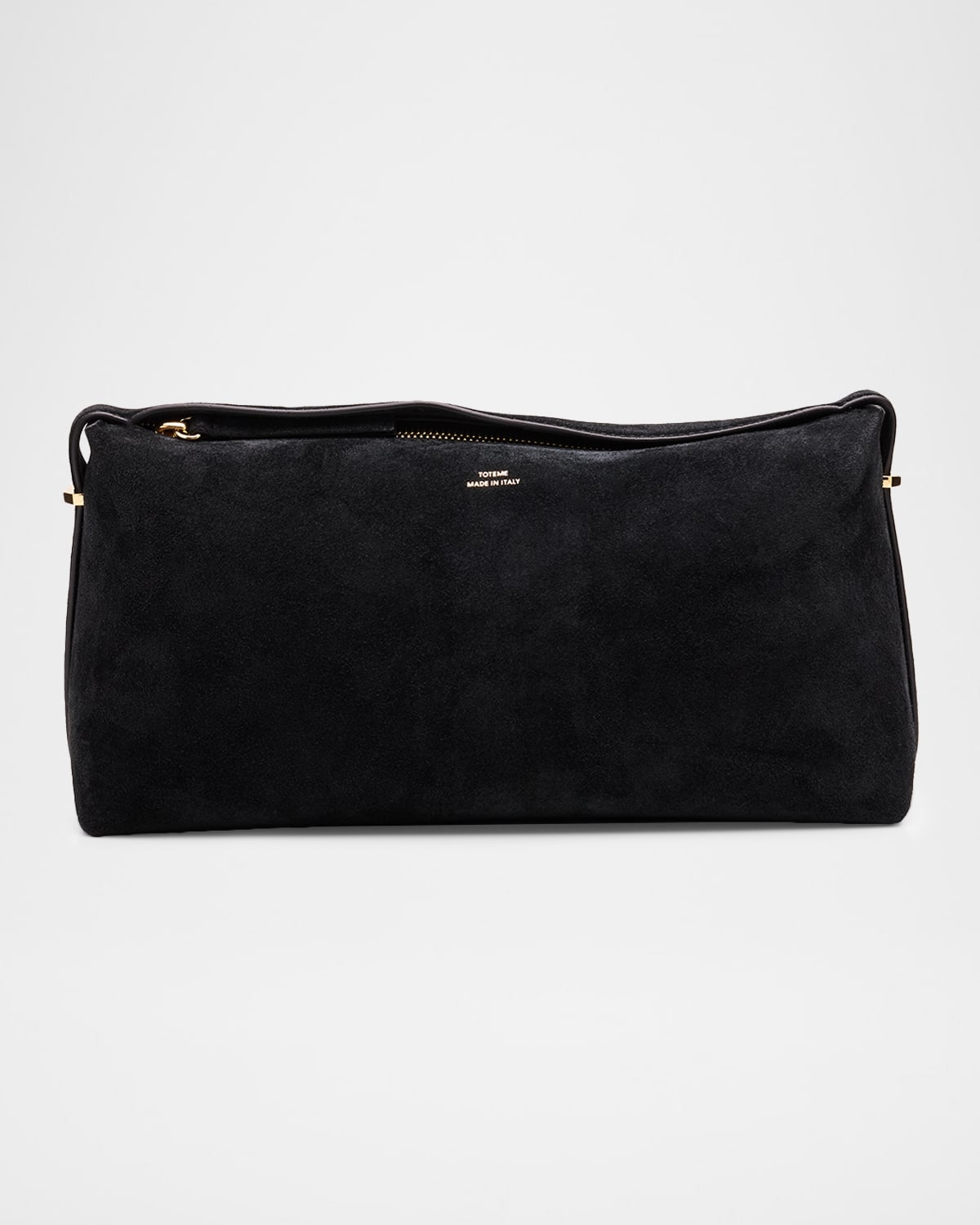 - Toteme belted clutch bag rendered in supple suede - Zip top closure - Interior, one card slot - Microfiber lining - Approx. 6"H x 11.4"W - Made in Italy