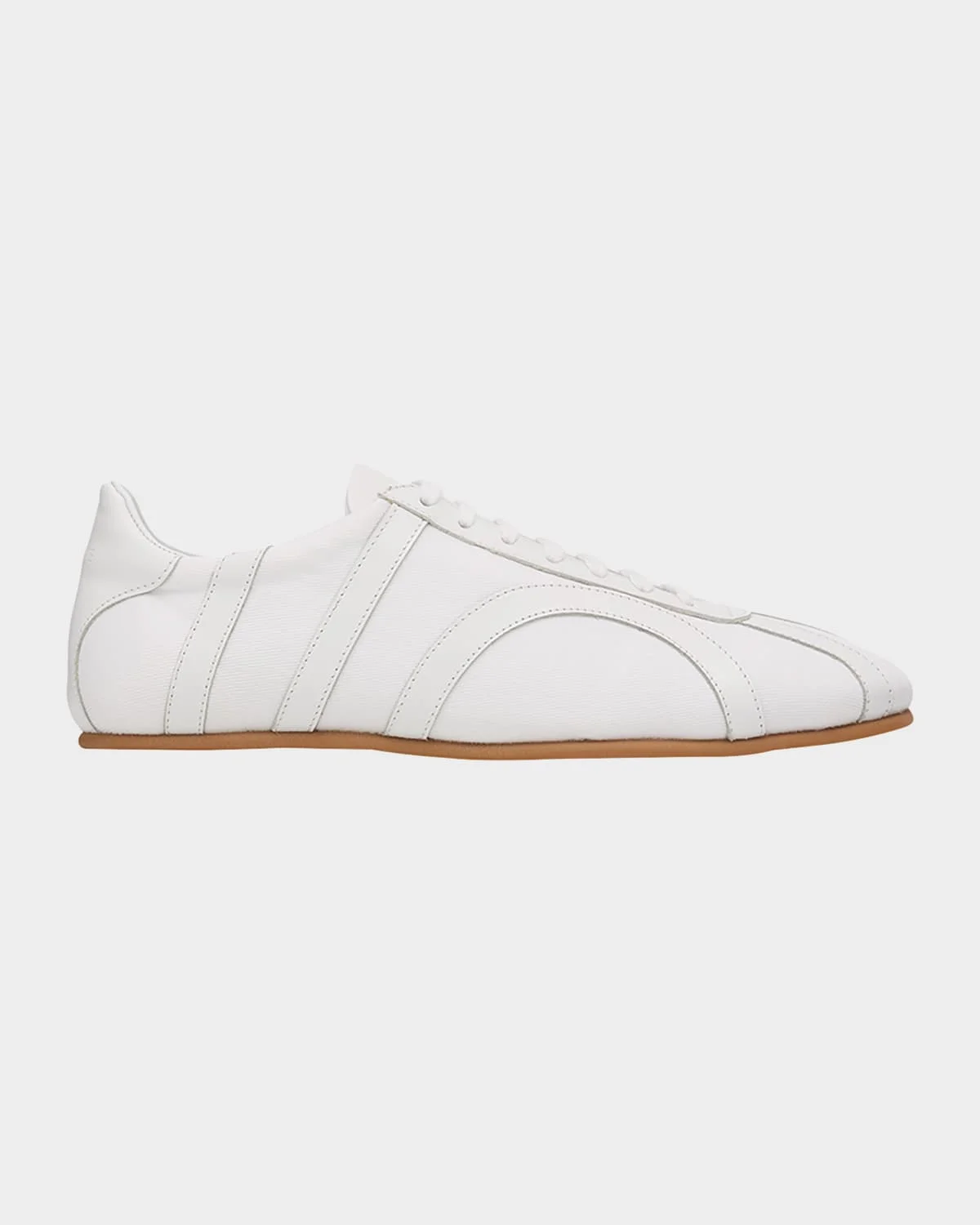 Toteme lowtop sneakers in canvas and leather Flat heel Round toe Laceup vamp Leather lining and outsole Made in Italy