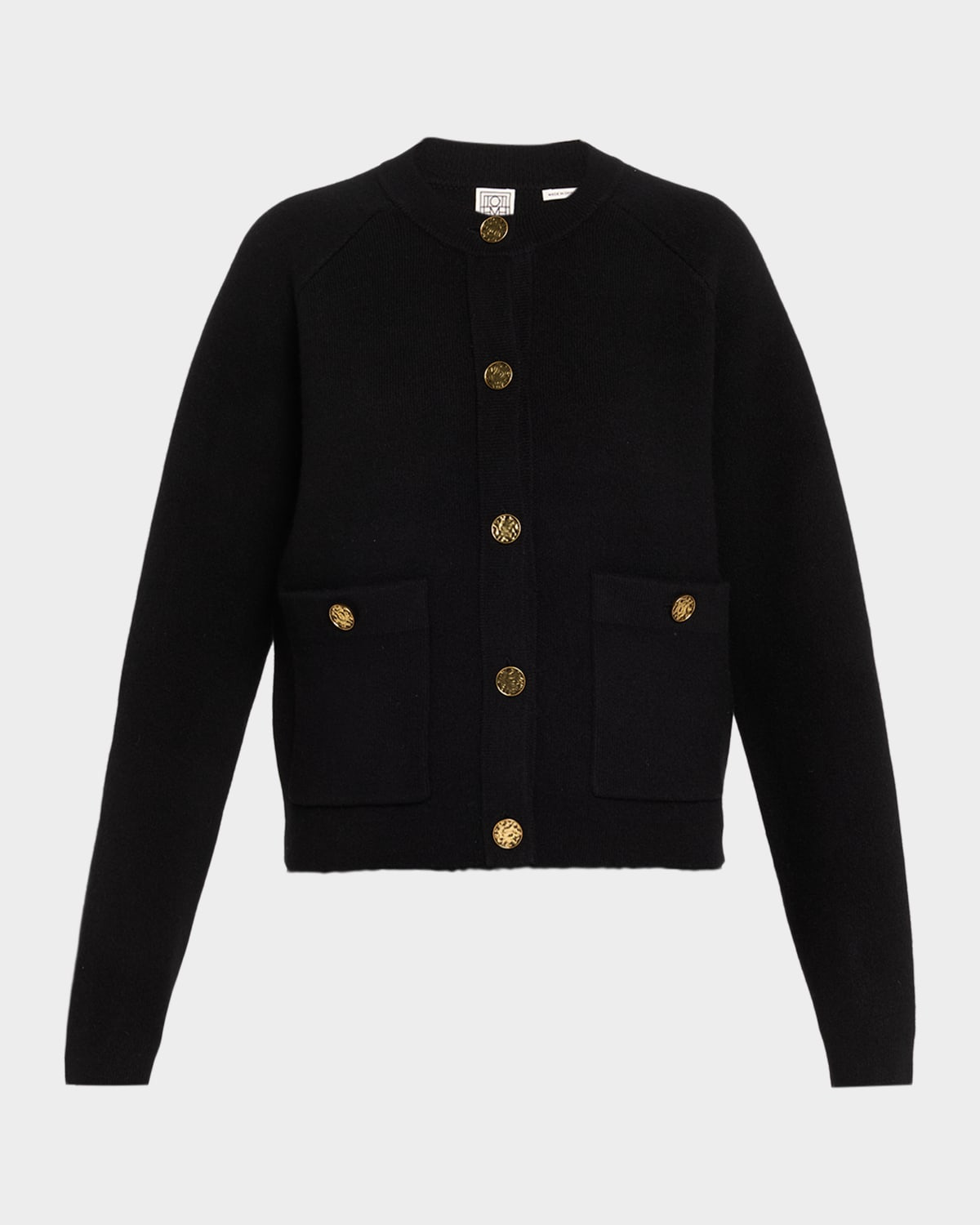 Knitted from cozy wool blended with luxurious cashmere, this cardigan by Toteme is complete with hammered goldtone shank buttons for an elegant update to a classic silhouette Crew neckline Long raglan sleeves Hip patch pockets with button closures Relaxed fit Hip length Button front closure Cashmere/wool/elastane Imported