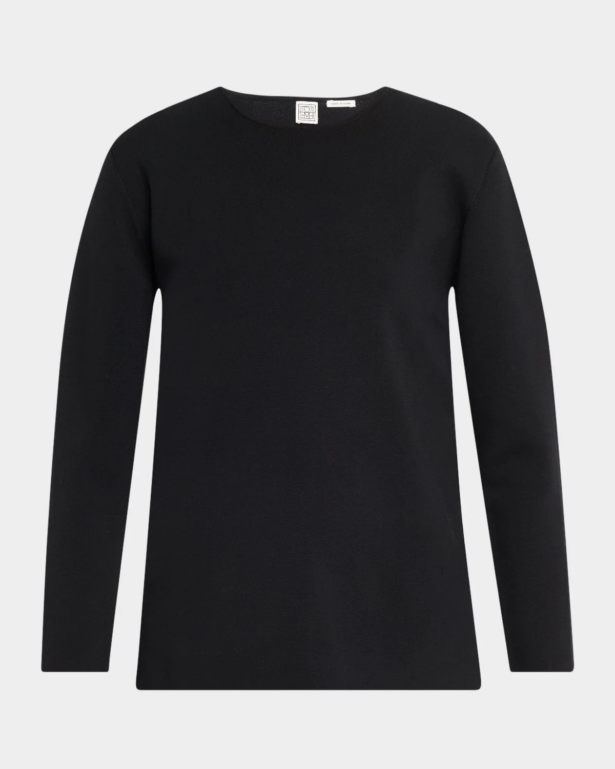 - Toteme sweater in a compact knit - Crew neckline - Long sleeves - Relaxed fit - Side slits hem - Pullover style - Cotton - Made in Italy