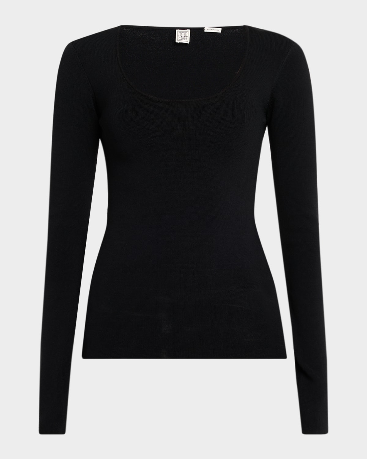 A foundational wardrobe piece, this top by Toteme is cut from signature compact knit in a flattering slim fit Scoop neckline Long sleeves Hip length Pullover style Viscose/nylon/polyamide/elastane Hand wash Imported