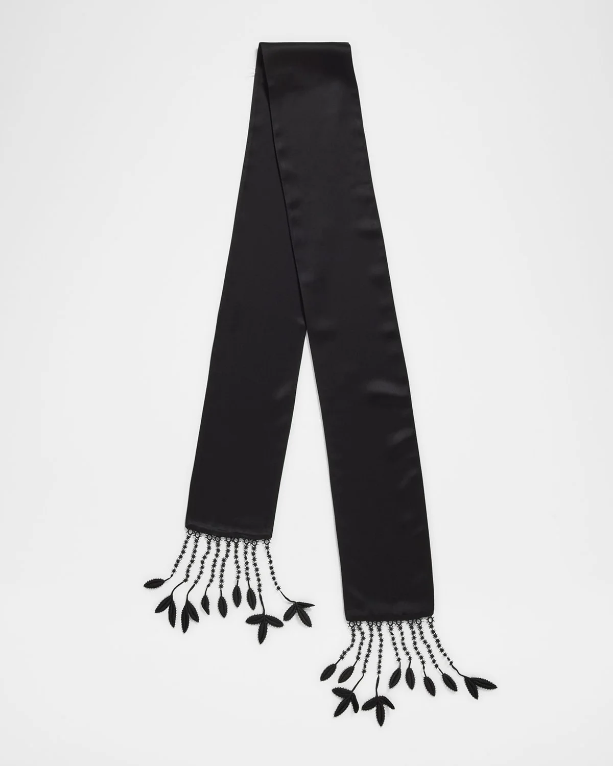 Crafted from fluid crepe, this Toteme tuxedo scarf showcases guipure lace fringing on both ends. Approx. 59"L x 5"W May be styled multiple ways Viscose Dry clean Imported