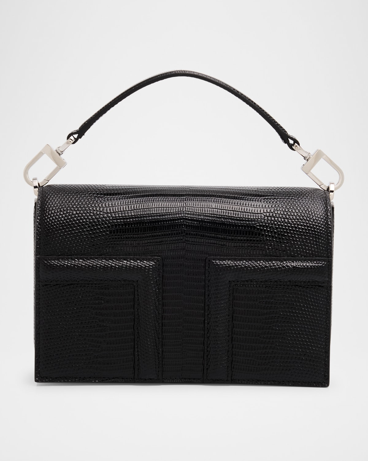 Mini T-flap lizard-embossed bag black