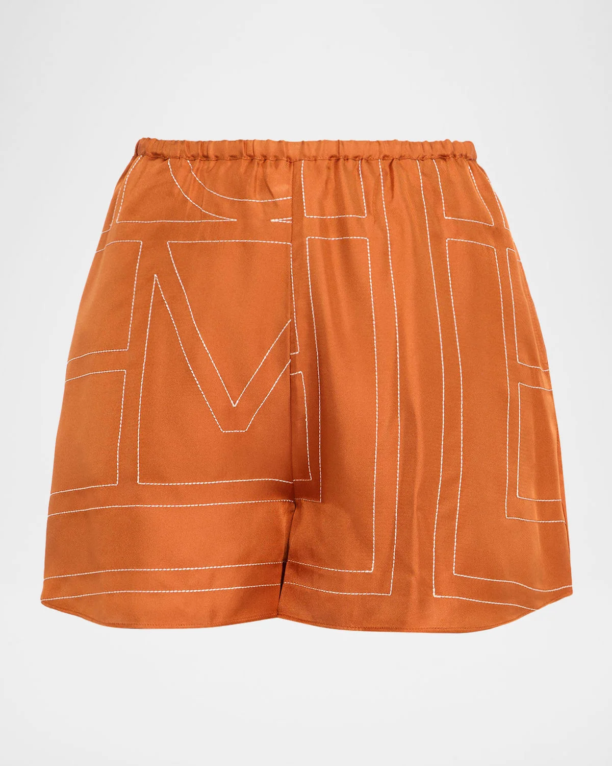 Toteme silk pajama shorts featuring monogram embroidery Mid rise Easy legs Pullon style Silk Imported